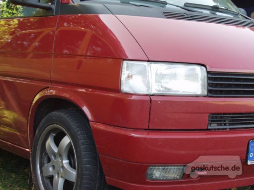 Ein T4 mit langem Vorderwagen (ab Modelljahr '96) und den seitlichen Lüftungsschlitzen im Kotflügel.